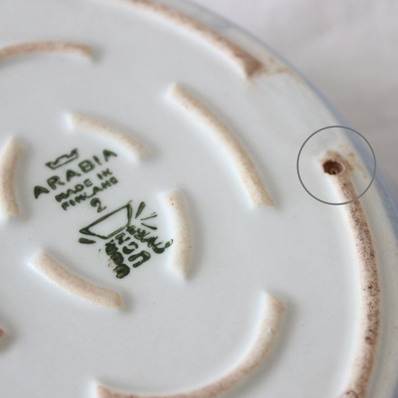 北欧ヴィンテージ食器の特性としまして、商品によっては製造時からの釉薬のとび、黒点、気泡、目跡、高台のガタつき、および経年によるカトラリー傷や貫入等がある場合がございます。